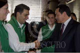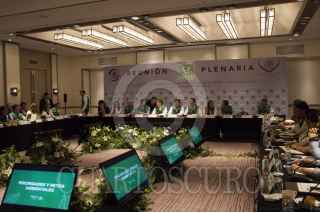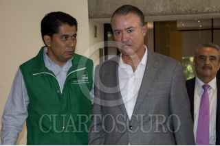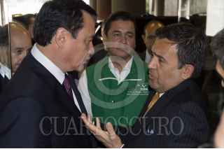 CIUDAD DE MÉXICO, 24AGOSTO2016.- Jesús Sesma Suárez, coordinador parlamentario del Partido Verde Ecologista de México (PVEM) en la Cámara de Diputados, saludó a Miguel Ángel Osorio Chong, secretario de Gobernación, durante los trabajos de la Reunión Plenaria de dicho partido. A sus espaldas, Carlos Puente Salas, coordinador parlamentario del PVEM en el Senado. FOTO: GALO CAÑAS /CUARTOSCURO.COM