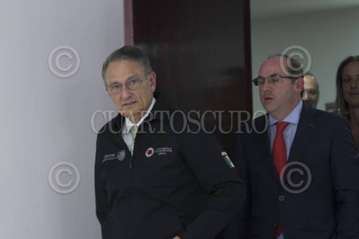CIUDAD DE MÉXICO, 24AGOSTO2016.- Roberto Ramírez de la Parra, director de la Comisión Nacional del Agua (CONAGUA), y Luis Felipe Puente Espinosa, coordinador General de Protección Civil de la Secretaria de Gobernación, ofrecieron una conferencia de prensa para hablar sobre el pronostico de las lluvias en todo el país, así como la actualización de cuantos fenómenos meteorológicos se formarán en los próximos meses. FOTO: MOISÉS PABLO /CUARTOSCURO.COM