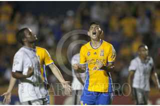 MONTERREY, NUEVO LEÓN, 24AGOSTO2016.- Luis Rodríguez de los Tigres de la UANL disputa el balón con Ricauter Barsallo del Plaza Amador de Panamá. en el estadio Universitario. Partido correspondiente a la liga de Campeones de la Concacaf. Marcador final 3-1 a favor de los locales. FOTO: MANUELA GARCÍA / CUARTOSCURO.COM