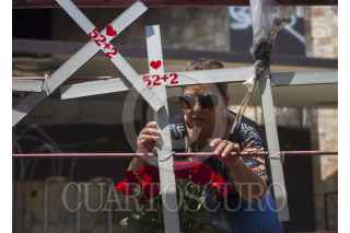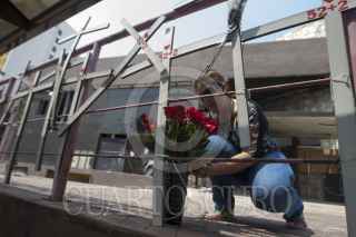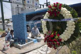 MONTERREY, NUEVO LEÓN, 25AGOSTO2016.- Cruces deterioradas, en el aniversario luctuoso de las víctimas del Casino Royale. En el lugar, el gobierno del estado colocó una ofrenda floral a las víctimas, a un costado del memorial que está en restauración. FOTO: MANUELA GARCIA /CUARTOSCURO.COM