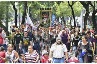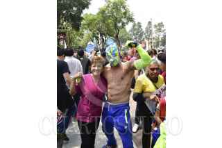 CIUDAD DE MÉXICO, 25AGOSTO2016.- Luchadores de la empresa triple AAA realizaron su tradicional peregrinación del Ángel de la Independencia a la Basílica de Guadalupe. Cientos de personas acompañaron a sus ídolos durante su ruta, menores de familia con máscaras o el rosto pintado se veían por las calles, pidiendo fotos o un autógrafo a los luchadores. La caravana de luchadores estuvo encabezada por Marisela Peña, presidenta de la Lucha Libre AAA, quien cargaba una urna con las cenizas de su hermano, Antonio peña, quien fuera el fundador de la empresa. FOTO: ARMANDO MONROY /CUARTOSCURO.COM