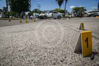 CULIACÁN, SINALOA, 26AGOSTO2016.- Una balacera registrada en el Bulevar Isla Musala en la colonia Las Quintas, dejo como saldo dos personas sin vida, una de las víctimas fue identificada extraoficialmente como Geovanni Parra Zambada sobrino de Ismael ¨El Mayo¨ Zambada la otra víctima corresponde al nombre de Juan ¨N¨de oficio albañil. En el lugar, decenas de casquillos Ak-47 fueron localizados como evidencia, corporaciones policiacas arribaron al lugar para realizar las investigaciones correspondientes. FOTO: CUARTOSCURO.COM