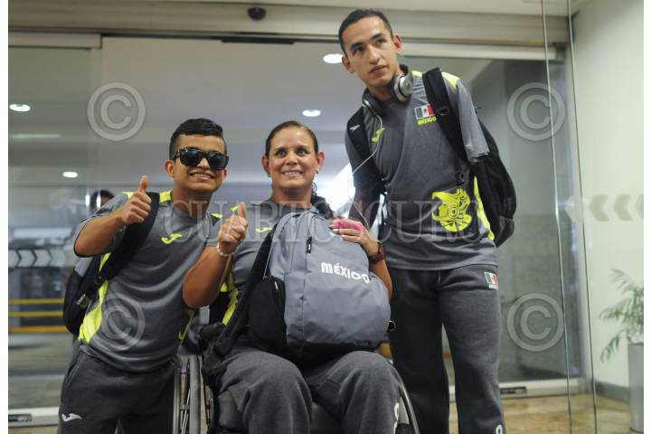 CIUDAD DE MÉXICO, 27AGOSTO2016.- El nadador multimedallista Gustavo Sánchez llegó a la terminal 1 del Aeropuerto capitalino, para partir con rumbo a los Juegos Paralímpicos de Río 2016 en Brasil, en los que participará para buscar ganar alguna medalla. FOTO: DIEGO SIMÓN SÁNCHEZ /CUARTOSCURO.COM