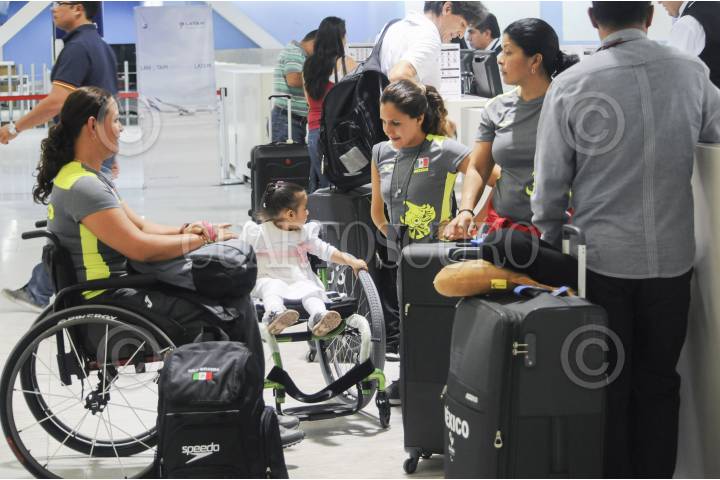 CIUDAD DE MÉXICO, 27AGOSTO2016.- El nadador multimedallista Gustavo Sánchez llegó a la terminal 1 del Aeropuerto capitalino, para partir con rumbo a los Juegos Paralímpicos de Río 2016 en Brasil, en los que participará para buscar ganar alguna medalla. FOTO: DIEGO SIMÓN SÁNCHEZ /CUARTOSCURO.COM