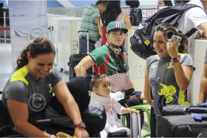 CIUDAD DE MÉXICO, 27AGOSTO2016.- El nadador multimedallista Gustavo Sánchez llegó a la terminal 1 del Aeropuerto capitalino, para partir con rumbo a los Juegos Paralímpicos de Río 2016 en Brasil, en los que participará para buscar ganar alguna medalla. FOTO: DIEGO SIMÓN SÁNCHEZ /CUARTOSCURO.COM