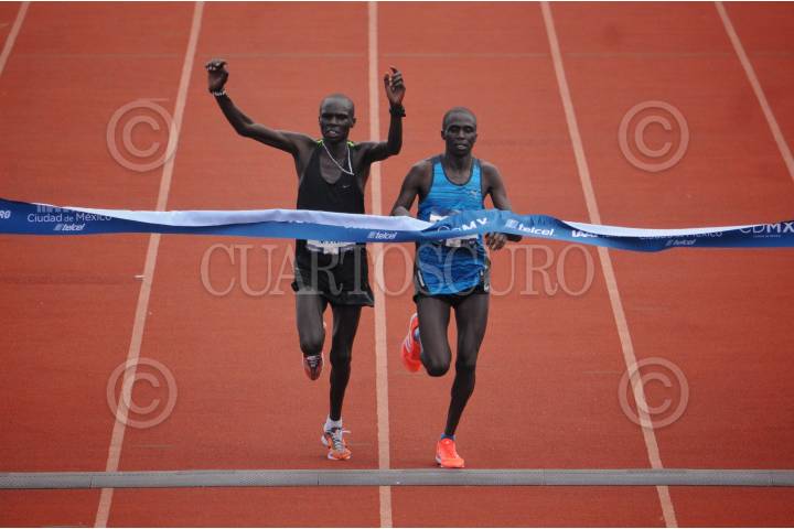CIUDAD DE MÉXICO, 28AGOSTO2016.- Los kenianos Emmanuel Mnangal, Isaacke Kenboi y Rodgers Ondati ganaron los sitios 1, 2 y 3 en el XXXVI Maratón de la Ciudad de México, luego de culminar la carrera en el estadio Olímpico Universitario de la UNAM. Horacio de la Vega, titular de Indeporte; Miguel Ángel Mancera, jefe de gobierno capitalino, y Enrique Graue Wiechers, rector de la UNAM, entregaron las preseas a los ganadores. FOTO: DIEGO SIMÓN SÁNCHEZ /CUARTOSCURO.COM