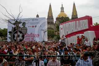 GUADALAJARA, JALISCO, 28AGOSTO2016.-Esta noche en la explanada de la Plaza de la Liberación y en el marco de la edición XXIII del Encuentro Internacional del Mariachi y la Charrería, se llevo a cabo un homenaje al cantautor, Juan Gabriel, quien falleció el día de hoy en la ciudad de Santa Mónica, California. En dicho homenaje se interpretaron canciones del compositor a cargo de los diversos mariachis que encabezaban la gala publica. FOTO : FERNANDO CARRANZA GARCIA / CUARTOSCURO.COM