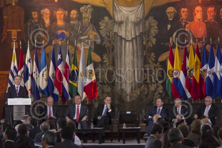 CIUDAD DE MÉXICO, 29AGOSTO2016.- Juan Pablo Castañon, presidente del Consejo Coordinador Empresarial (CCE), Aurelio Nuño Mayer, secretario de Educación Pública (SEP), y Enrique Solana Sentíes, presidente de la Concanaco Servytur, durante el foro de consulta sobre Modelo Educativo y Propuesta Curricular para la Educación Obligatoria, en la sede de la SEP. FOTO: MOISÉS PABLO /CUARTOSCURO.COM
