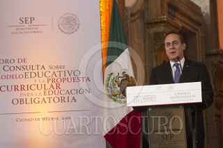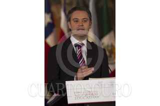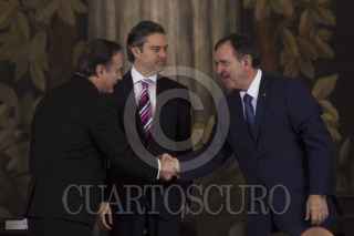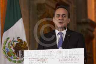 CIUDAD DE MÉXICO, 29AGOSTO2016.- Juan Pablo Castañon, presidente del Consejo Coordinador Empresarial (CCE), Aurelio Nuño Mayer, secretario de Educación Pública (SEP), y Enrique Solana Sentíes, presidente de la Concanaco Servytur, durante el foro de consulta sobre Modelo Educativo y Propuesta Curricular para la Educación Obligatoria, en la sede de la SEP. FOTO: MOISÉS PABLO /CUARTOSCURO.COM