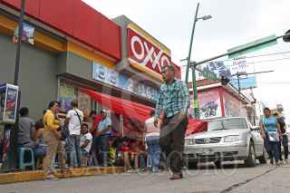 TUXTLA GUTIÉRREZ, CHIAPAS, 29AGOSTO2016.- Maestros pertenecientes a la Coordinadora Nacional de Trabajadores de la Educación (CNTE) tomaron este lunes tiendas trasnacionales como Bodega Aurrera, Coppel y Oxxos en la capital chiapaneca, para exigir al Gobierno Federal la abrogación de la reforma educativa e instalar mesas de trabajo. FOTO: JESÚS GARCÍA /CUARTOSCURO.COM