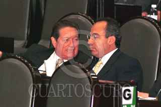 Rafael Rodriguez Barrerra y Felipe Calderón Hinojosa durante la sesión ordinaria en San Lázaro, donde el tema de hoy fue la conversación entre Vicente Fox y Fidel Castro difundida en diversos medios de cominicación. FOTO: Pedro Mera/CUARTOSCURO.COM