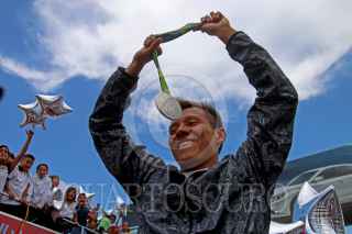 GUADALAJARA, JALISCO, 29AGOSTO2016.- El clavadista tapatío, Germán Sánchez, quien obtuvo la medalla de plata en los pasados Juegos Olímpicos de Rio de Janeiro, en Brasil, arribó esta tarde al Aeropuerto Internacional Miguel Hidalgo y Costilla de la ciudad, donde fue recibido por familiares, amigos y compañeros del Consejo Estatal para el Fomento Deportivo (CODE). FOTO: FERNANDO CARRANZA GARCIA /CUARTOSCURO.COM