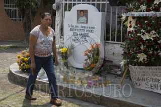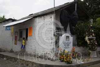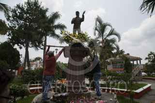 PARÁCUARO, MICHOACÁN, 29AGOSTO2016.- Habitantes del pueblo natal de Juan Gabriel (Alberto Aguilera) colocaron ofrendas en la casa natal del famoso artista. En el centro del pueblo donde se encuentra una estatua del "Divo de Juárez" se colocaron flores y veladoras, además de que en todas las calles se escuchan sus canciones. FOTO: ALAN ORTEGA /CUARTOSCURO.COM