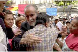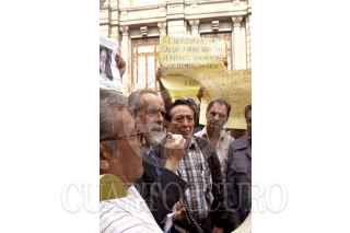 El senador panista Diego Fernández de Cevallos, platico con jubilados y pensionados de Pemex los cuales se mantienen en un plantón frente a la Cámara Alta. FOTO: Victoria Valtierra/CUARTOSCURO.COM