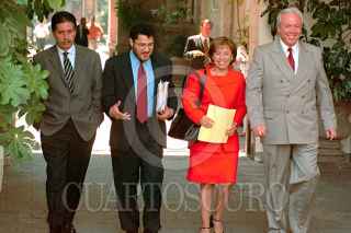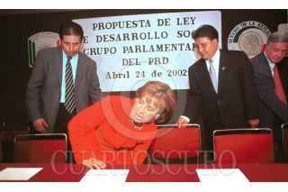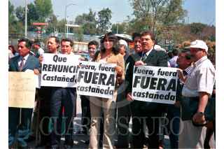 Los diputados locales y federales Dione Anguiano y Alfredo Hernandez Raigosa protestaron a las afueras de Los Pinos en contra del secretario de Relaciones Exteriores. FOTO: Gilberto Molina/CUARTOSCURO.COM