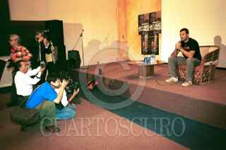 Pau Donés, líder del grupo Español Jarabe de Palo, en conferencia de prensa anunció su concierto de mañana en la explanada del Zócalo capitalino. FOTO: Victoria Valtierra/CUARTOSCURO.COM