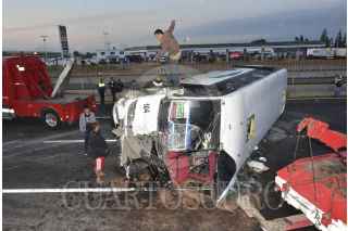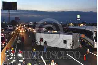 IXTAPALUCA, ESTADO DE MÉXICO, 31AGOSTO2016.- Un camión de pasajeros se volcó en la autopista México-Puebla, a la altura del kilómetro 30, con un saldo de 25 personas heridas. FOTO: ARMANDO MONROY /CUARTOSCURO.COM