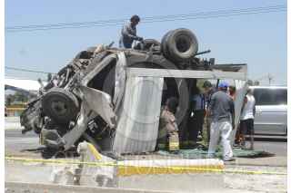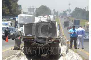 TEXCOCO, ESTADO DE MÉXICO, 31AGOSTO2016.- Una camioneta de tres y media tonelada perdió una llanta delantera lo que provocó que se estrellrá contra un camión que venía en el contrasentido de la autopista Peñón-Texcoco, a la altura del kiómetro 31, uno de los chóferes murió prensado. FOTO: ARMANDO MONROY /CUARTOSCURO.COM