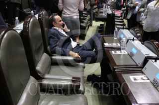 CIUDAD DE MÉXICO, 31AGOSTO201.- Charbel Jorge Estefan Chidiac, diputado del PRI, habló por celular desde su curul y para más confort, se quito los zapatos, previo a la toma de protesta de los integrantes de la mesa directiva de la Cámara de Diputados. FOTO: SAÚL LÓPEZ /CUARTOSCURO.COM
