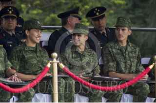 CIUDAD DE MÉXICO, 01SEPTIEMBRE2016.- Salvador Cienfuegos Zepeda, secretario de la Defensa Nacional, presidió la promoción de cargos a elementos del ejército al igual que la entre de reconocimientos a los deportistas inscritos en el servicio militar y que participaron en los pasado Juegos Olímpicos de Río 2016. María del Rosario Espinoza; Ismael Hernández e Iván García fueron los medallistas reconocidos. FOTO: GALO CAÑAS /CUARTOSCURO.COM