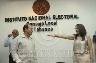 VILLAHERMOSA, TABASCO, 01SEPTIEMBRE2017.- María Elena Cornejo Esparza tomo protesta como nueva Vocal Ejecutivo del Instituto Nacional Electoral Tabasco, ante el consejero electoral Marco Antonio Baños, en la sala de juntas de esta oficina local. FOTO: MARCO POLO GUZMÁN HERNÁNDEZ /CUARTOSCURO.COM