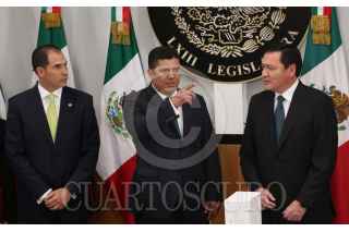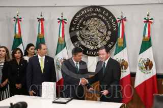 CIUDAD DE MÉXICO, 01SEPTIEMBRE2016.- Cesar Camacho Quiroz, coordinador del PRI en la Cámara de Diputados y Emilio Gamboa Patron, coordinador del PRI en el Senado de la República, acompañaron a Miguel Ángel Osorio Chong Secretario de gobernación al termino del la entrega del i forme de gobierno en el Congreso de la Unión. FOTO: SAÚL LÓPEZ /CUARTOSCURO.COM