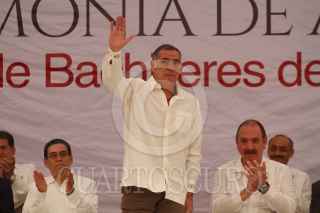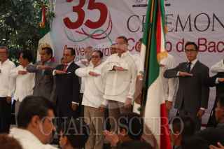 OAXACA, OAXACA., 02SEPTIEMBRE2016.- Este viernes se conmemoró el trigésimo quinto aniversario de la fundación del Colegio de Bachilleres de Oaxaca (Cobao), la ceremonia se realizó en el Cobao 01 de la agencia de Pueblo Nuevo. El acto fue encabezado por el gobernador, Gabino Cué. FOTO: ARTURO PÉREZ ALFONSO /CUARTOSCURO.COM