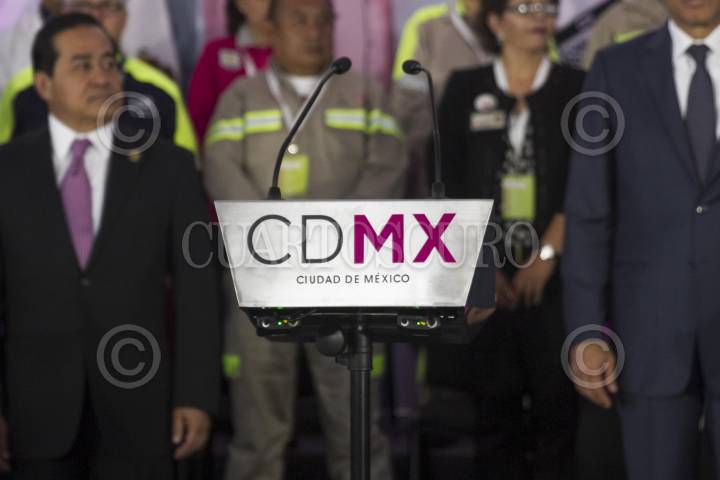 CIUDAD DE MÉXICO, 05SEPTIEMBRE2016.- Miguel Ángel Mancera, Jefe de Gobierno, y Juan Ayala, líder del Sindicato de Trabajadores del Distrito Federal, al finalizar el evento "Más Hospitales y Servicios ISSSTE-CDMX", en la explanada del Monumento a la Revolución. FOTO: MOISÉS PABLO /CUARTOSCURO.COM