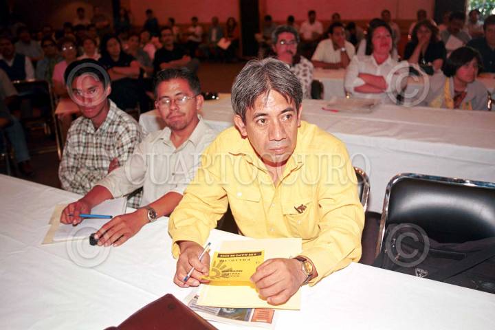 Gerardo Fernández Noroña y Victor Hugo Círigo en los trabajos de la Asamblea de Delegados del Congreso Nacional del PRD. FOTO: Victoria Valtierra/CUARTOSCURO.COM