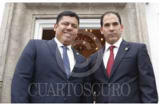 CIUDAD DE MÉXICO, 05SEPTIEMBRE2016.- El presidente de la Cámara de Diputados, Javier Bolaños Aguilar, se saluda con el presidente del Senado de la República, Pablo Escudero, a unos días de asumir sus respectivos cargos. FOTO: SENADO /CUARTOSCURO.COM
