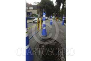 CIUDAD DE MÉXICO, 05SEPTIEMBRE2016.- Un camión de carga hundió sus llantas traseras en un socavón que se formó en la calle de Florencia, casi esquina con avenida Reforma. El asfalto no soportó el peso de quince toneladas que transportaba el tortón. FOTO: ARMANDO MONROY /CUARTOSCURO.COM
