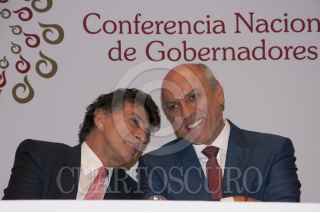 CIUDAD DE MÉXICO, 06SEPTIEMBRE2016.- Elías Micha Zaga, coordinador de Ciencia, Tecnología e Inovación del Conacyt, y Enrique Cabrero Mendoza, director general del Conacyt; conversan durante la presentación del Programa de Estímulos de la Inovación (PEI) 2017. El cual fomenta el vínculo entre la industría y la universidades particulares para el desarrollo de proyector de investigación. Según los informes, el 30% de la inversión a la tecnología viene de rescursos privados, mientras que el 70% restante proviene de recursos públicos. FOTO: PAULINA NEGRETE /CUARTOSCURO.COM