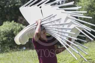 CIUDAD DE MÉXICO, 06SEPTIEMBRE2016.- Un trabajador carga sillas en el evento en donde se lanzó la Estrategia de Resiliencia CDMX, en el Cárcamo de Dolores en el Bosque de Chapultepec. FOTO: MOISÉS PABLO /CUARTOSCURO.COM