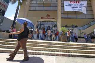 TUXTLA GUTIERREZ, CHIAPAS, 07SEPTIEMBRE2016.- Por tercer dia consecutivo maestros pertenecientes a la Coordinadora de Trabajadores de la Educacion, bloquearon los accesos a las plazas comerciales en la capital chiapaneca. Al lugar también arribaron elementos de la Policía Estatal para garantizar el acceso, pero esto no se logró. FOTO: JESÚS GARCÍA /CUARTOSCURO.COM