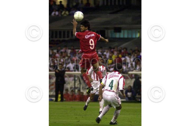 El Necaxa tomó ligera ventaja al vencer 1-0 al Toluca en el juego de ida de los cuartos de final dela liguilla del Torneo de Verano 2002 disputado esta noche en la cancha del estadio Azteca.. FOTO:Juan Pablo Zamora/CUARTOSCURO.COM