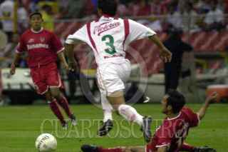 El Necaxa tomó ligera ventaja al vencer 1-0 al Toluca en el juego de ida de los cuartos de final dela liguilla del Torneo de Verano 2002 disputado esta noche en la cancha del estadio Azteca.. FOTO:Juan Pablo Zamora/CUARTOSCURO.COM