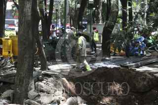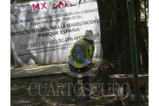 CIUDAD DE MÉXICO, 08SEPTIEMBRE2016.- En el Parque España, la Secretaria de Turismo local, en coordinación con la Delegación Cuauhtémoc, realizan trabajos de cambio banquetas, adoquines y mantenimiento general de este espacio. FOTO: ANTONIO CRUZ /CUARTOSCURO.COM