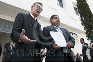CIUDAD DE MÉXICO, 08SEPTIEMBRE2016.- José Alfonso Suárez del Real y Miguel Ángel Hernández, diputados del partido Morena de las delegaciones Cuauhtémoc y Coyoacán respectivamente, entregaron una carta al procurador local, Rodolfo Ríos de Garza, en la Procuraduría General de Justicia de la Ciudad de México. Dicho documento exige investigar de manera inmediata y expedita el asesinato cometido en agravio de León Serment, cineasta mexicano, autor de la cinta "El efecto Tequila". El director fue víctima de un asalto donde murió, luego de 8 puñaladas el pasado sábado 27 de agosto. FOTO: PAULINA NEGRETE /CUARTOSCURO.COM