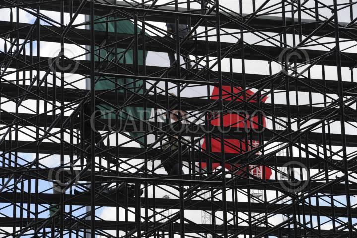 CIUDAD DE MÉXICO, 08SEPTIEMBRE2016.- En zócalo ya se están colocando las gradas para las celebraciones de las fiestas patrias que inician el 15 de este mes con el grito de la Independencia y el 16 con un desfiles en el primer cuadro. FOTO: ARMANDO MONROY /CUARTOSCURO.COM