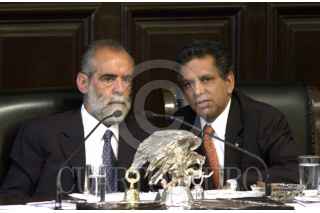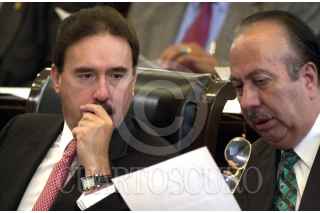 Los legisladores priistas Emilio Gamboa y José Elías Romero durante la sesión de la Comisión Permanente. FOTO: Oswaldo Ramírez/CUARTOSCURO.COM