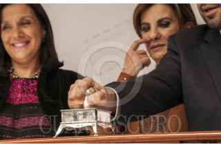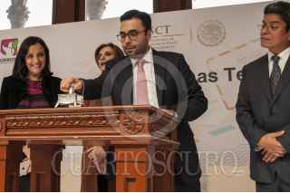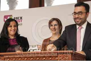 CIUDAD DE MÉXICO, 09SEPTIEMBRE2016.- Adriana Labardini comisionada del Insituto Federal de Telecomunicaciones (IFT), Elena Tanus Meouchi, directora General del Servicio Postal Mexicano y Gabriel Contreras Saldìvar, comisionado del (IFT) encabezaron el evento dónde se realizó la cancelación del Timbre Postal "Las telecomunicaciones en México" en el Palacio Postal, ubicado en el centro capitalino. FOTO: PAULINA NEGRETE /CUARTOSCURO.COM