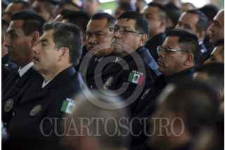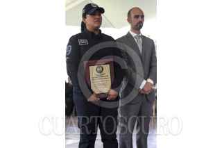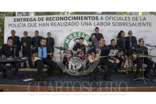 CUERNAVCA, MORELOS, 09SEPTIEMBRE2016.- Con el fin de contar una historia diferente sobre la profesión de policía, la organización "Morelos Seguro Contigo" entregó un reconocimiento a 5 efectivos policiacos. Los oficiales reconocidos por su labor son: Fidencio Aguilar por servicio policial, Enrique López por honor al mérito, Martín Guarneros reconocimiento por la perseverancia, Aldair Romero por valor heroico y María Eugenia Ramírez por honor a la mejor compañera. Armando Haddad Giorgi, presidente de la organización Morelos Seguro Contigo, y Javier Viruete, coordinador general del Mando Único, presidieron el evento donde se dedicó un minuto de silencio por los efectivos policiaco caídos en acción. El evento fue amenizado por la banda de música del Mando Único. FOTO: MARGARITO PÉREZ RETANA /CUARTOSCURO.COM