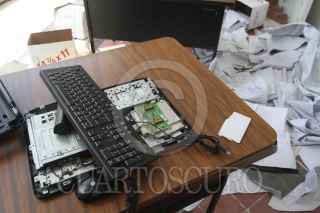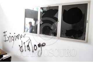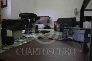 OAXAQC, OAXACA., 08SEPTIEMBRE2016.- Egresados de las once escuelas normales vándalo zarpan este viernes las oficinas de Certificación del Instituto Estatal de Educación Publica de Oaxaca (IEEPO) ubicadas en la calle de Abasolo de la cuidad de Oaxaca. En dicho sitio realizaron distintos destrozos y presuntamente robaron equipos de cómputo personales y teléfonos celulares. FOTO: ARTURO PÉREZ ALFONSO /CUARTOSCURO.COM