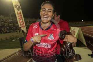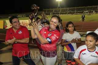 HERMOSILLO, SONORA, 09SEPTIEMBRE2016.- La arquera y medallista olímpica mexicana Alejandra Valencia recibió esta noche un reconocimiento - artesanía de Palo Fierro típico de Sonora por parte de Servando Carbajal presidente de Cimarrones, durante el partido de futbol soccer entre Cimarrones Fc vs Coras Tepic, Jornada 9 torneo Apertura de la Liga Ascenso MX 2016,realizado en el Estadio Héroe de Nacozari. FOTO: LUIS GUTIÉRREZ /NORTE PHOTO /CUARTOSCURO.COM