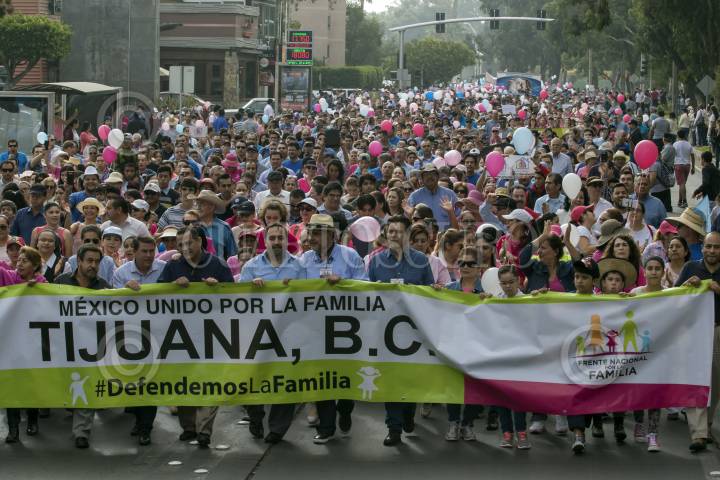 GUADALAJARA, JALISCO, 10SEPTIEMBRE2016.- Esta tarde miles de personas salieron a las calles para protestar en contra del matrimonio igualitario así como de la adopción de niños por parte de personas del mismo sexo y defender la ideología tradicional de la familia de hombre y mujer, la marcha partió de la Glorieta Minerva y finalizo en Avenida Chapultepec en donde recorrieron las principales avenidas de la ciudad, dicha marcha fue convocada por el Frente Nacional por la Familia. Cabe señalar que en algunos puntos de la marcha hubo pequeños grupos en contra de esta postura. FOTO : FERNANDO CARRANZA GARCIA / CUARTOSCURO.COM