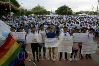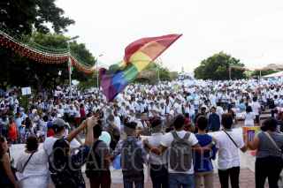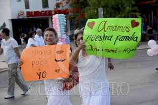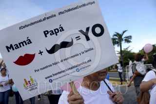 CANCÚN, QUINTANA ROO, 10SEPTIEMBRE2016.- Manifestaciones antagónicas a favor y en contra de la iniciativa de Enrique Peña Nieto sobre familias heterosexuales y homosexuales, marcharon hacia el palacio municipal esta tarde conformado por organizaciones católicas, protestantes, evangélicas y cristianas y un grupo de la diversidad sexual quien se plantó frente a la plaza de la Reforma en la estatua de Benito Juárez al igual para exigir sus derechos. FOTO: ELIZABETH RUIZ /CUARTOSCURO.COM