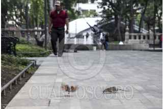 CIUDAD DE MÉXICO, 11SEPTIEMBRE2016.- Una rata intenta alcanzar a un pájaro, en la Alameda Central. En 2012, este parque fue remodelado; sin embargo, la plaga de roedores sigue presente debido a la basura que dejan los transeúntes y que sirve para alimentarlos. FOTO: TERCERO DIAZ /CUARTOSCURO.COM