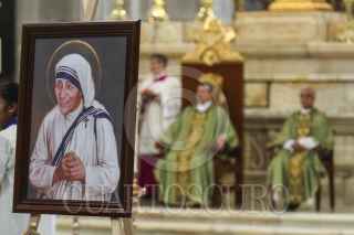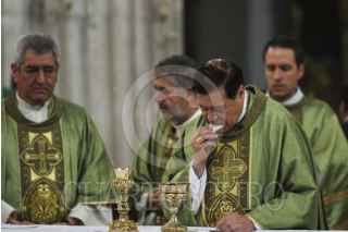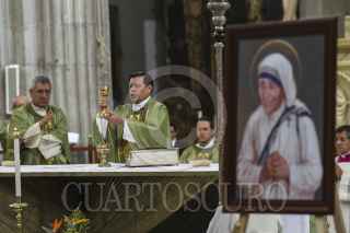 CIUDAD DE MÉXICO, 11SEPTIEMBRE2016.- Norberto Rivera Cabrera, arzobispo primado de México, realizó la misa dominical en la Catedral Capitalina. Durante la ceremonia, se pudo observar la imagen de la Madre Teresa de Calcuta, quien hace unas semanas fue canonizada por el Papa Francisco II, en el Vaticano. FOTO: ADOLFO VLADIMIR /CUARTOSCURO.COM