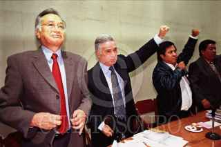 Los senadores Manuél Barlett y Demetrio Sodi, se reunieron con trabajadores del Sindicato Mexicano de Electricistas para presentar sus propuestas a la reforma eléctrica. FOTO: Juan Pablo Zamora/CUARTOSCURO.COM