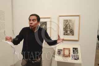 CIUDAD DE MÉXICO, 12SEPTIEMBRE2016.- Eduardo Espinoza, curador de la exposición "La Sociedad Mexicana de Grabadores (1947-1971). Una plataforma para la promoción y difusión de la Estampa", y Santiago Pérez, director del Museo de la Estampa, durante la inauguración de la mencionada exposición. La Sociedad Mexicana de Grabadores, fundada en 1947, logró reunir a algunos de los más destacados grabadores mexicanos del siglo XX, como Abelardo Ávila, Angelina Beloff, Pedro Castelar, Lola Cueto, Manuel Echauri, Óscar Frías, Ángeles Garduño, Amador Lugo, Susana Neve, Mariano Paredes, Feliciano Peña, Julio Prieto y Ángel Zamarripa, entre otros. La presente exposición contribuye a la reconstrucción de un capítulo representativo de la historia del arte gráfico mexicano. FOTO: MOISÉS PABLO /CUARTOSCURO.COM